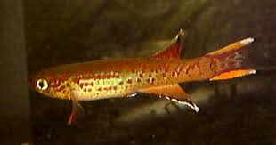 Pachypanchax playfairii is the only species of freshwater fish endemic to the Seychelles, a group of islands in the Indian Ocean directly east of Tanzania. An egg scatterer, Playfair's Panchax breeds amongst floating water plants. This species is unusual in that the scales of the male become lifted during the breeding season, giving the skin a rough appearance. Like the Common Lyrefish (Aphyosemion australe), Playfair's Panchax is a type of killifish and, as such, rarely lives to more than three years old.In spite of their name, the cyprinodonts are not closely related to the Cyprinidae, or carp family. They were formerly considered near allies of the pikes and their relatives, as they share some features: a flat head with protractile mouth beset with cardiform, villiform, or compressed, bi- or tri-cuspid teeth, generally large scales, and the absence of a well-developed lateral line. However, they are now generally assigned to the order Cyprinodontiformes.