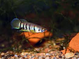 Epiplatys sexfasciatus or six-barred panchax is a species of killifish that can be found in West Africa. The fish is a timid surface dwelling predator. The six-barred panchax is 4 inches long and closely resembles Epiplatys longiventralis.The crevalle jack, Caranx hippos (also known as the common jack, black-tailed trevally, couvalli jack, black cavalli and yellow cavalli) is a common species of large marine fish classified within the jack family, Carangidae. The crevalle jack is distributed across the tropical and temperate waters of the Atlantic Ocean, ranging from Nova Scotia, Canada to Uruguay in the west Atlantic and Portugal to Angola in the east Atlantic, including the Mediterranean Sea. It is distinguishable from similar species by its deep body, fin colouration and a host of more detailed anatomical features, including fin ray and lateral line scale counts. It is one of the largest fish in the genus Caranx, growing to a maximum known length of 124 cm and a weight of 32 kg, although is rare at lengths greater than 60 cm. The crevalle jack inhabits both inshore and offshore waters to depths of around 350 m, predominantly over reefs, bays, lagoons and occasionally estuaries. Young fish dispersed north by currents in the eastern Atlantic are known to migrate back to more tropical waters before the onset of winter; however, if the fish fail to migrate, mass mortalities occur as the temperature falls below the species' tolerance limits.