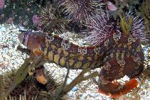 The gunnels are a family, Pholidae, of marine fishes in the order Perciformes. They are elongated, somewhat eel-like fishes that range from the intertidal zone to depths of 200 m (660 ft), though the majority are found in shallow waters. Most are restricted to the North Pacific, ranging as far south as Baja California and East China. The only exceptions are Pholis gunnellus from the North Atlantic, and P. fasciata from the Arctic Sea, North Atlantic and North Pacific. They typically reach a maximum length of 20–30 cm (7.9–12 in), but Apodichthys flavidus reaches 46 cm (18 in).They eat small crustaceans and molluscs