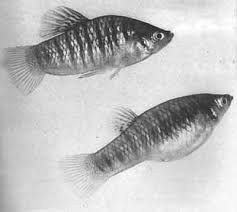 Poecilia is a genus of euryhaline brackish water fish in family Poeciliidae of order Cyprinodontiformes.The type species is P. vivipara. Live-bearers, the Poecilia species are collectively known as mollies, with the exception of Endler's livebearer (P. wingei) and the famous guppy (P. reticulata). Members of this genus are members of the family Poecilidae, which includes the southern platyfish or "platy" (Xiphophorus maculatus), and the green swordtail (X. hellerii).Along with their platy cousins, the mollies are part of a pivotal aquaculture group of livebearers, which can live in water from fresh to fully marine, and a wide range of other conditions. They feed on smaller insects, animals, and vegetation.IUCN list two of the species, the sulphur molly, P. sulphuraria, and the broadspotted molly, P. latipunctata, as Critically Endangered.The generic name Poecilia derives from the Greek (variegated), in reference to the fishes' coloration. Mollies need to live in water that is 25 to 28 °C (77 to 82 °F).Mollies come in several different colors and spot patterns, such as black, white, black and white spots, orange, Orange and white spots.