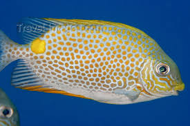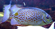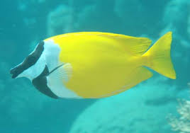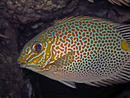 The largest rabbitfish grows to about 53 cm (21 in), but most species only reach between 25 and 35 cm (9.8 and 14 in). All have large dark eyes and small, somewhat rabbit-like mouths which gives them their name. Most species have either bright colors or a complex pattern.Another unusual feature among rabbitfishes is their pelvic fins, which are formed from two spines, with 3 soft rays between them. The dorsal fin bears 13 spines with 10 rays behind, while the anal fin has 7 spines and 9 rays behind; the fin spines are equipped with well-developed venom glands. All rabbitfish are diurnal, some live in school, while others live more solitary lives among the corals. They are herbivorous, feeding on benthic algae in the wild. They are pelagic spawners. Many are fished for food, and the more colorful species—especially the foxfish – are often kept in aquaria.In aquaria, they eat a variety of fresh vegetables and algae. Care must be taken during aquarium maintenance and cleaning, as rabbitfishes are often easily frightened and will use their venomous spines in defense. Their venom is not life-threatening to adult humans, but causes severe pain.