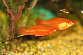 Xiphophorus is a genus of euryhaline and freshwater fishes in the family Poeciliidae of order Cyprinodontiformes. The many Xiphophorus species are all called either platyfish (or platies) or swordtails. The type species is X. hellerii, the Green swordtail. Platyfish and swordtails are Live-bearers, meaning that they reproduce via internal fertilization. Three species and their hybrids are common in the aquarium trade: the Green swordtail, the Southern platyfish (X. maculatus) and the Variable platyfish (X. variatus).The various Xiphophorus species are native to areas of Belize, Guatemala, Honduras, and especially Mexico. All small fishes, they reach maximum lengths of 2.5–14 cm (1.0–5.5 in).IUCN lists two Xiphophorus species, the Marbled swordtail (X. meyeri) and the Northern platyfish (X. gordoni), as Endangered, while the Monterrey platyfish (X. couchianus) is listed as Critically Endangered.